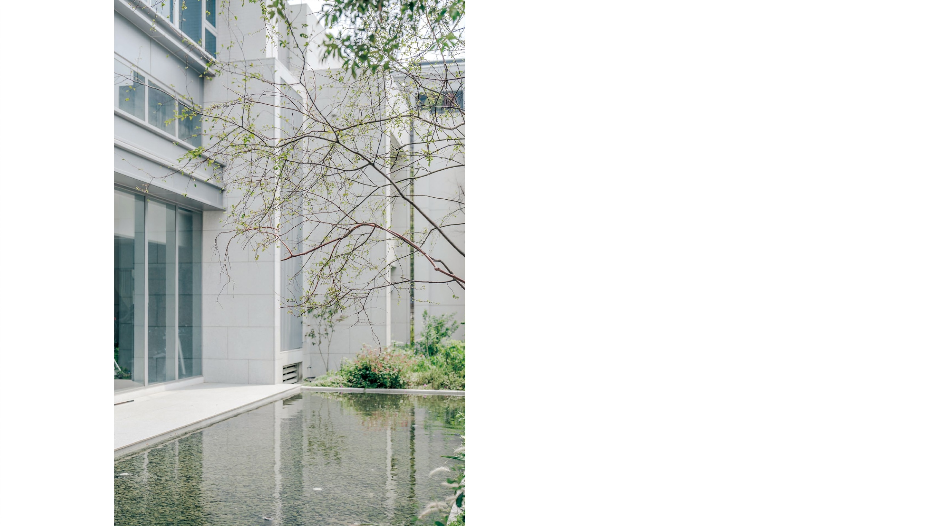在挑高的白色大廳裡, 人字形的結構展現幾何律 動之美,兩側洛帝帷幕玻 璃立面,進而創造出建築 的通透性,交錯映照的光 彩,創造出隨時序變化的 動態之美